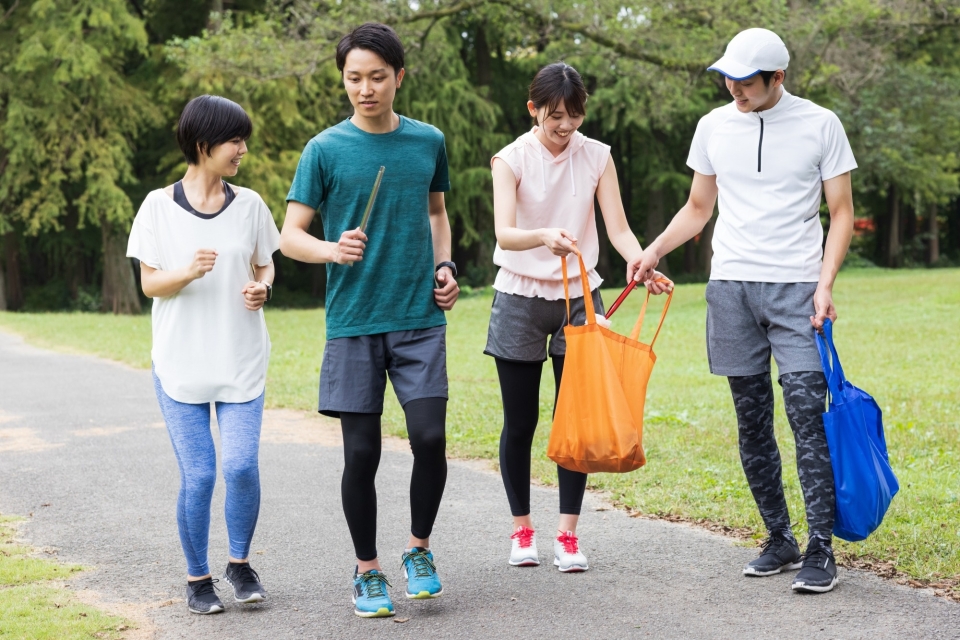 プロギングとはスウェーデン語の「plocka upp(拾う)」と英語の「jogging(走る)」を合わせた造語のことでジョギングをしながらごみ拾いをするという新しいフィットネスのことです。