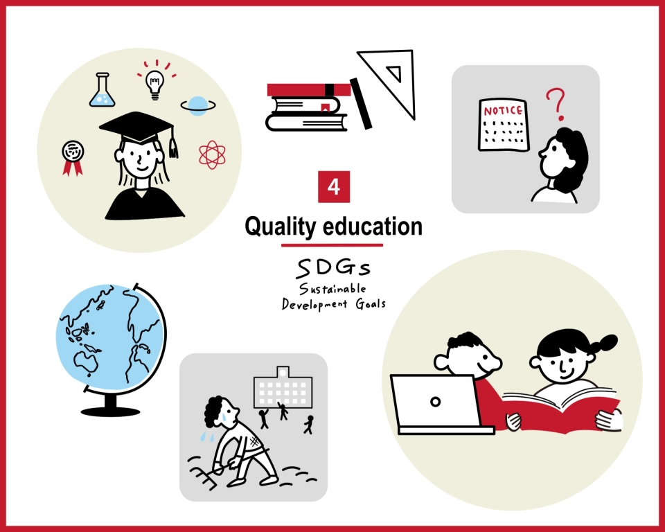 「質の高い教育をみんなに」とは、「すべての人々への包摂的かつ公正な質の高い教育を提供し、生涯学習の機会を促進する」ということです。