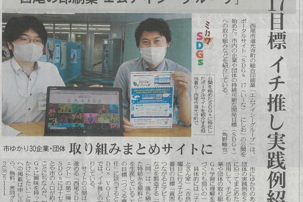 当ポータルサイト「SDGs 17(いーな)にしお」の記事が、本日2022年6月15日(水)の中日新聞様に掲載されました。 サイトへの掲載は下記より無料で申請できますので、SDGsの取り組みをされている企業の皆様の申請を...