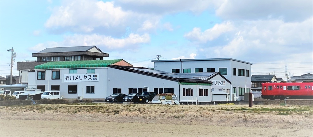 1957年創業の石川メリヤス有限会社(西尾市吉良町)は140台以上の編み機を擁するニット工場であり、リサイクル繊維を使った作業用手袋を始めとする多種多様なニット小物を生産しています。OEM生産(相手先ブランドの生産)が主力ですが、オリジナル商品の開発にも力を入れており、中でも「ラブヒール」という靴下は発売以来30年以上多くのお客様からの支持をいただいているロングセラー商品です。近年では、廃棄に回さざるを得ない残糸を利用したアップサイクル商品の開発にも力を入れています。