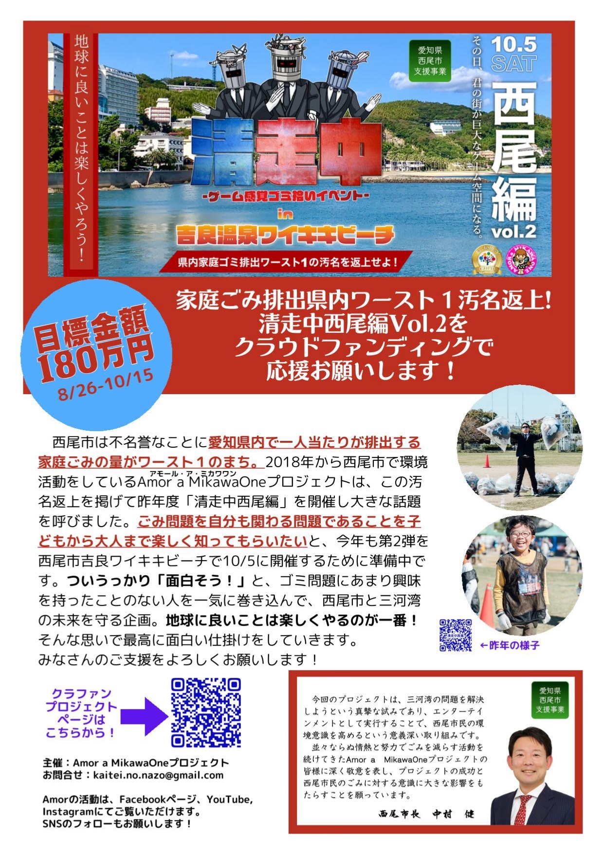 「清走中西尾編Vol.2」開催のためのクラウドファンディングを応援してください!