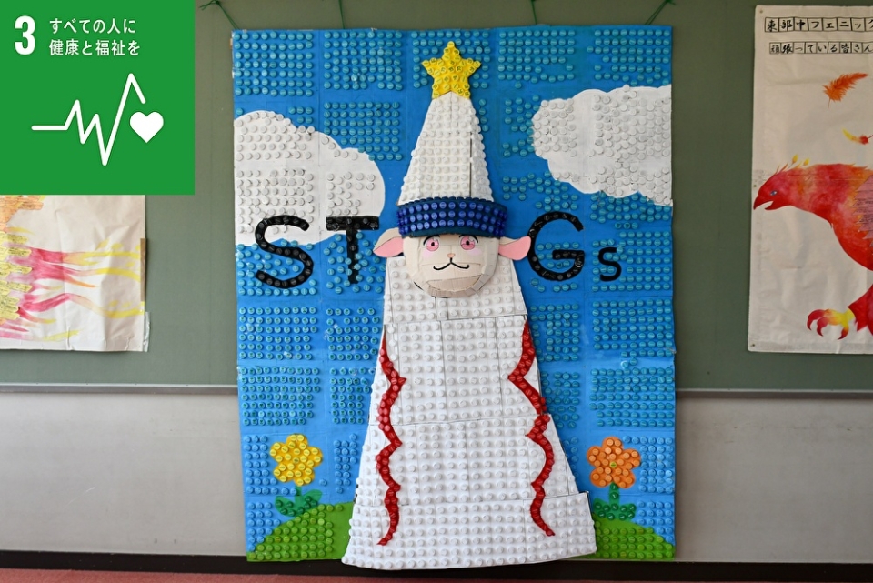 C組のテーマ「ペットボトルキャップ回収を通じたワクチン支援とキャップアート(SDGs ゴール3)」